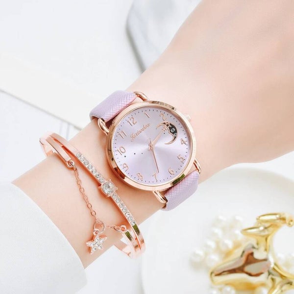Reloj de dama con extensible sintetico, incluye pulsera metalica