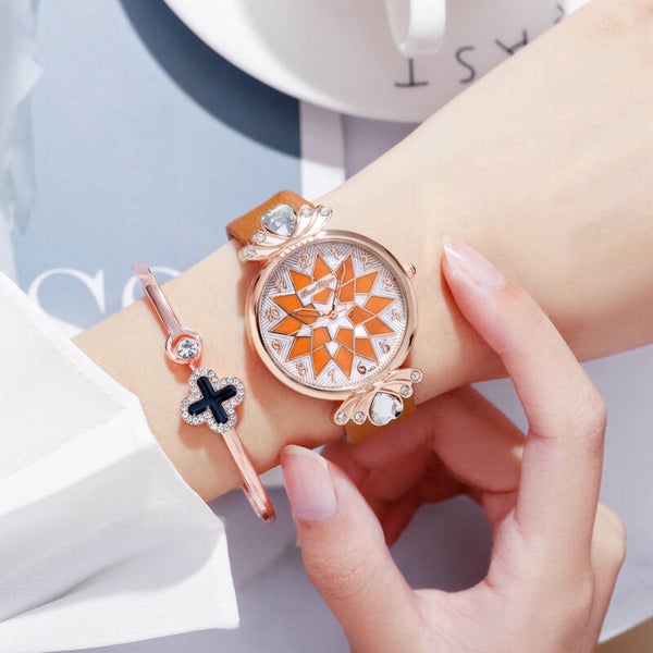 Relol de dama con extensible sintetico, incluye pulsera metalica