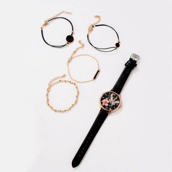 Reloj de dama analogo con extensible sintetico, con broche simple, incluye juego de 4 pulseras
