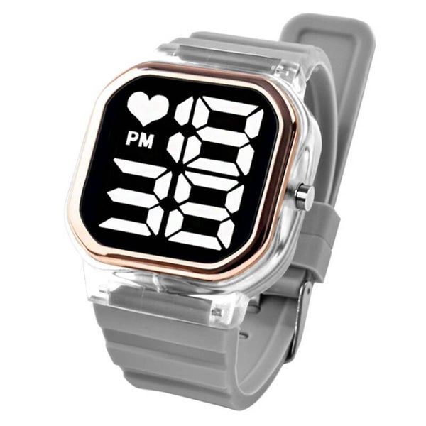 Relo digital Unisex con extensible de caucho y broche simple, marca hora y fecha.