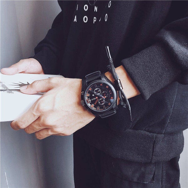 Reloj analogo de caballero con extensible sintetico y broche simple, cuenta con fechador, incluye pulsera negra en hecha de material sintetico