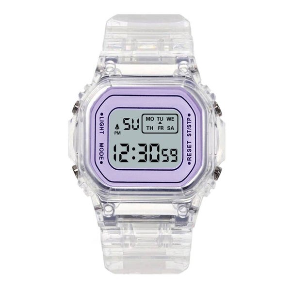 Reloj digital unisex con extensible de caucho y broche simple, marca fecha y hora, cronometro, alarma, cuenta con luz.