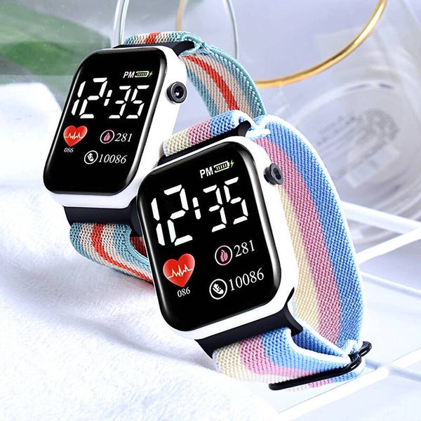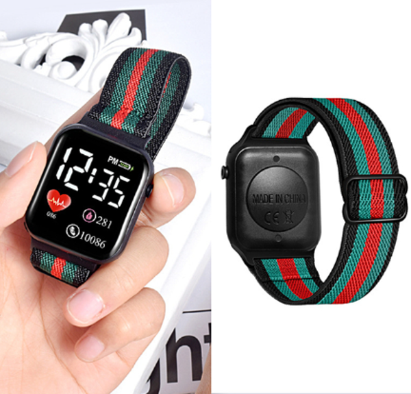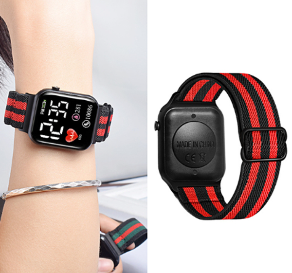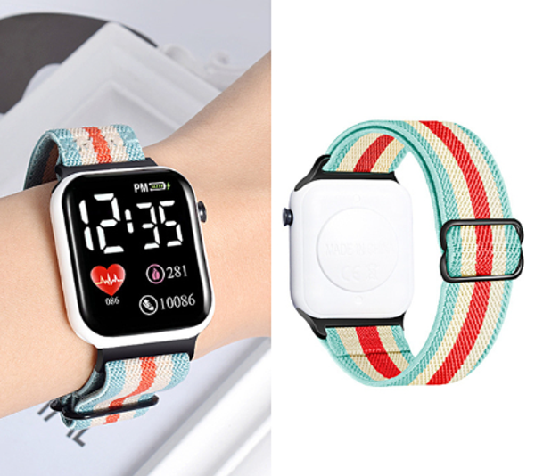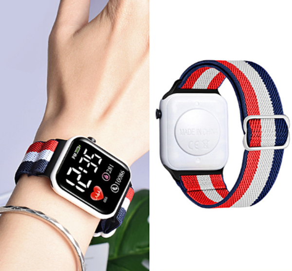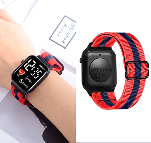 Reloj digital Unisex con extensible textil y broche anclado, marca hora y fecha