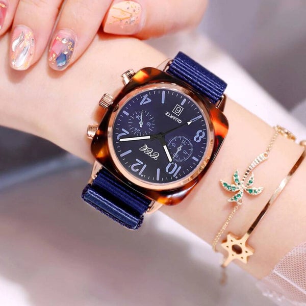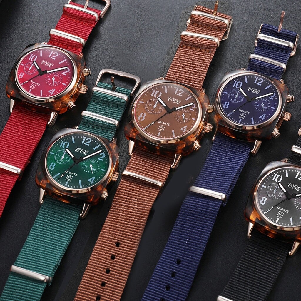 Reloj analogo Unisex con extensible textil y broche simple